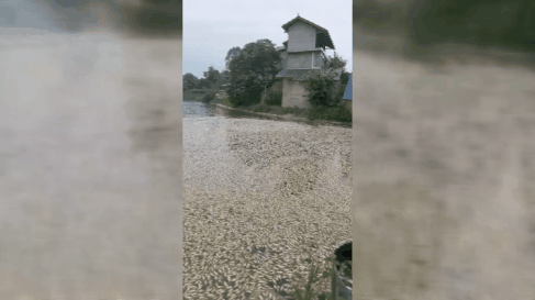 上面这段画面,是郝世云用手机拍摄的自家鱼塘的情景。视频中,大量的黄辣丁浮出水面,出现成片死亡。