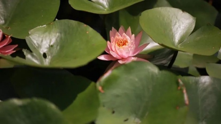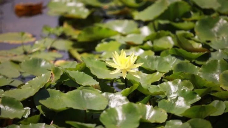在公园缘池里,科罗拉多睡莲、黄睡莲竞相绽放。潋滟的水光中,一朵朵或粉或黄的娇嫩花朵盛开在翠绿的莲叶之上,秀气而娴雅,尽显曼妙姿态。