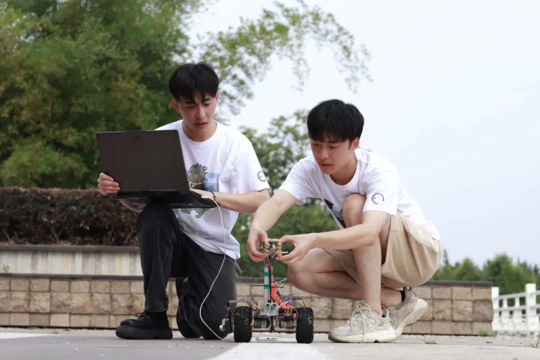 大学期间,“志达兄弟”仅有两次合作。“第一次是大三时,有一项团队项目设计,需要2个专业的男女同学协作打造一辆智能小车,实现老师要求的所有功能。”近水楼台的兄弟俩拉上各自同学自然组队。学校东湖边一块区域,成了临时试验场。从晨光到日暮,总能看到他们忙碌的身影。“困难挑战不少!”袁睿达举例说,比如小车突然断电或程序运行不了了,大家就一起解决。合作过程中,兄弟俩也有分歧。“那就拿各自的解决方案去验证,谁的效果好,就用谁的。”