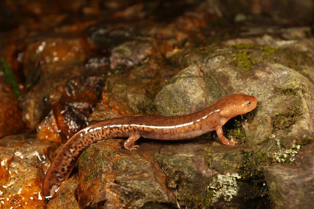 有尾目中,在中国分布的分别是以大鲵为代表的隐鳃鲵科、以中国小鲵为代表的小鲵科以及包含各种螈类的蝾螈科。现在中国已知的蝾螈科有52个物种,许多是中国特有物种,它们大多生活在华南山区的溪流或水塘中,要一睹它们的真面目,就不得不爬山涉水,溯流而上。