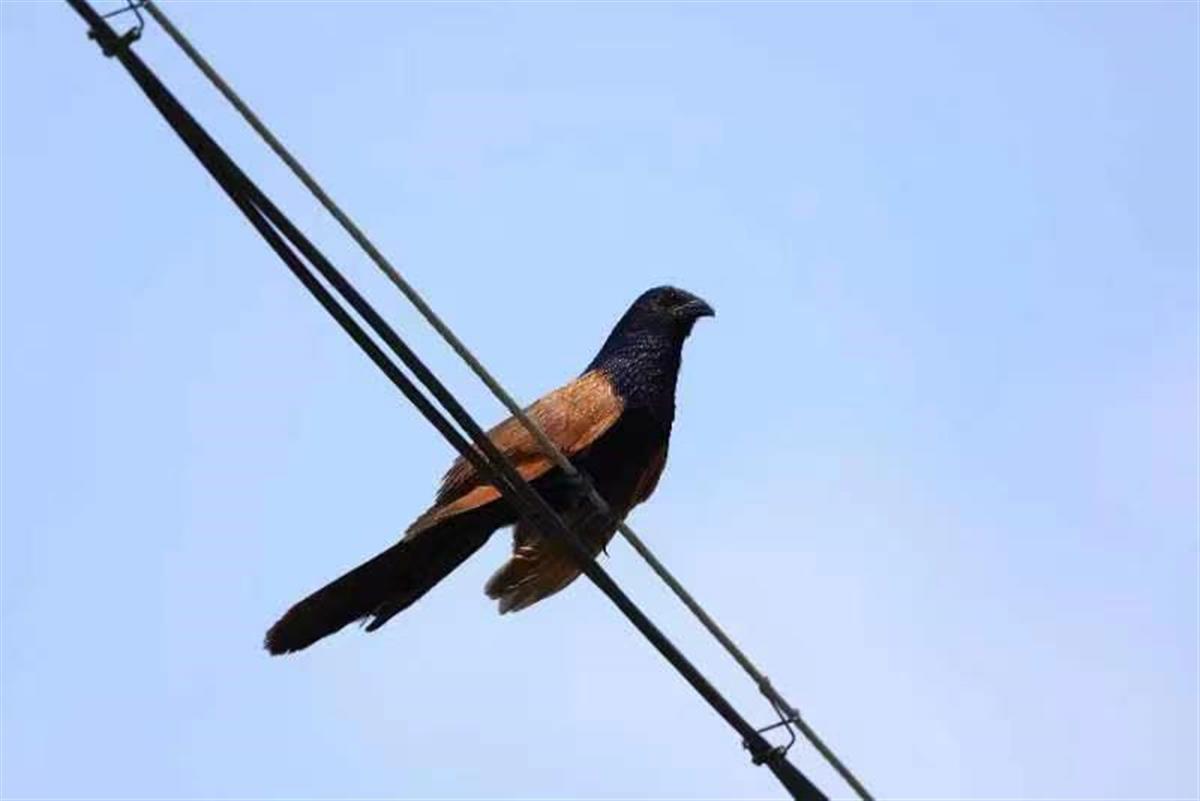 小鸦鹃(Centropus bengalensis),是杜鹃科、鸦鹃属的中型鸟类,体长30-40厘米,通体黑色,肩和翅栗色,翼下覆羽为红褐色或栗色。小鸦鹃通常栖息于草地、灌木丛和矮树丛地带,喜单独或成对活动,主要以昆虫和小型动物为食,也吃少量植物果实与种子。据悉,这种原本分布在我国云南、贵州、广西、广东、海南、安徽、河南、福建及台湾等地的鸟类在黄梅尚属首次发现。
