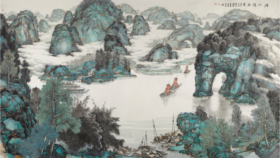 中国画《漓江揽胜图》(长355cm×高185cm) 作者:陈毅刚 王庆军