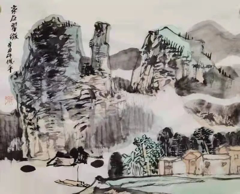 中国画《家在翠微》(长50cm×高40cm) 作者:韦俊平