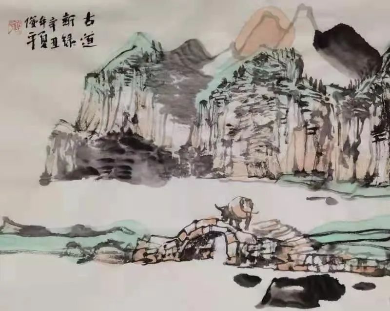 中国画《古道新绿》(长50cm×高40cm) 作者:韦俊平