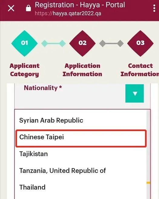 有岛内网友爆料,填写该注册系统时,没有“台湾”选项可选,台外事部门发言人欧江安当时声称,“台湾驻沙特代表处”已试图调查情况,并称“仍在等待卡塔尔相关机构的回应”。此后不久,筹办单位一度出现“台湾”选项,台外事部门还为此表达“感谢”。
