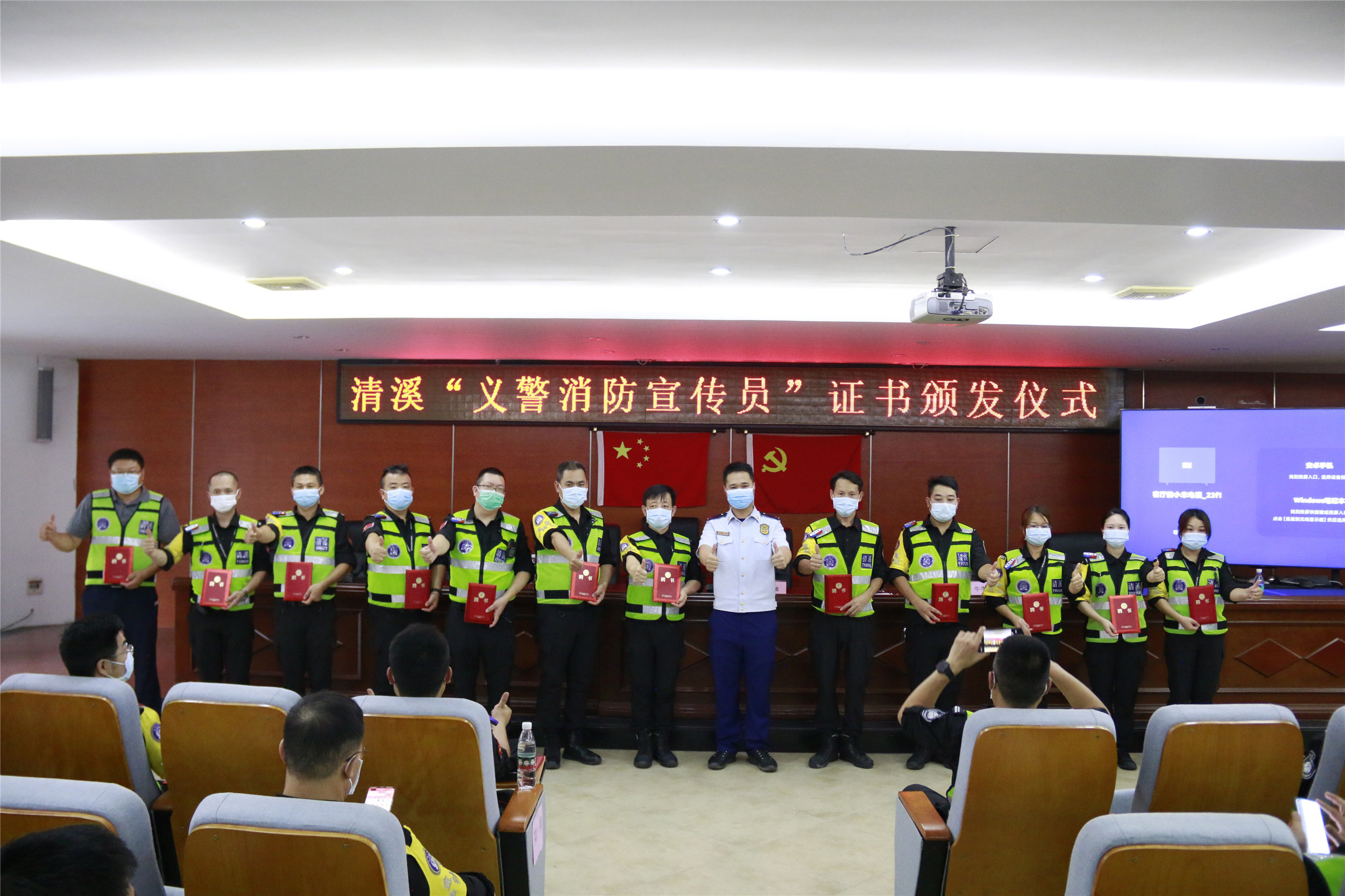 最后,清溪消防救援大队、公安分局向现场义警颁发了清溪“义警消防宣传员”证书,并指出消防安全重于泰山,希望各义警宣传员牢固树立安全忧患意识,除加强本企业的消防安全措施外,空余时间还带动全民关注消防、学习消防、宣传消防。