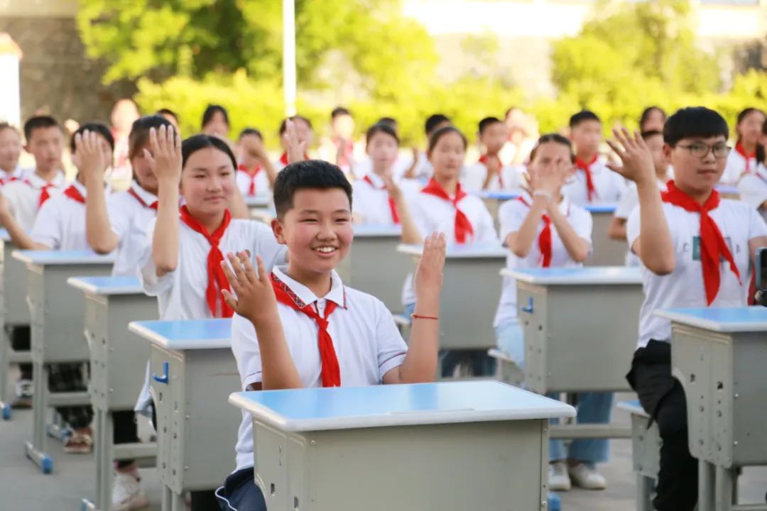 湖北省十堰市郧阳区青曲镇中心小学学生在做课桌操。张传郧 摄