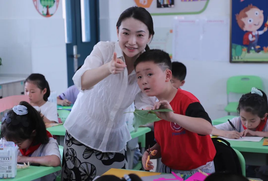 江苏省盐城市东进路小学学生在教师指导下制作树叶贴画。薛飞 摄