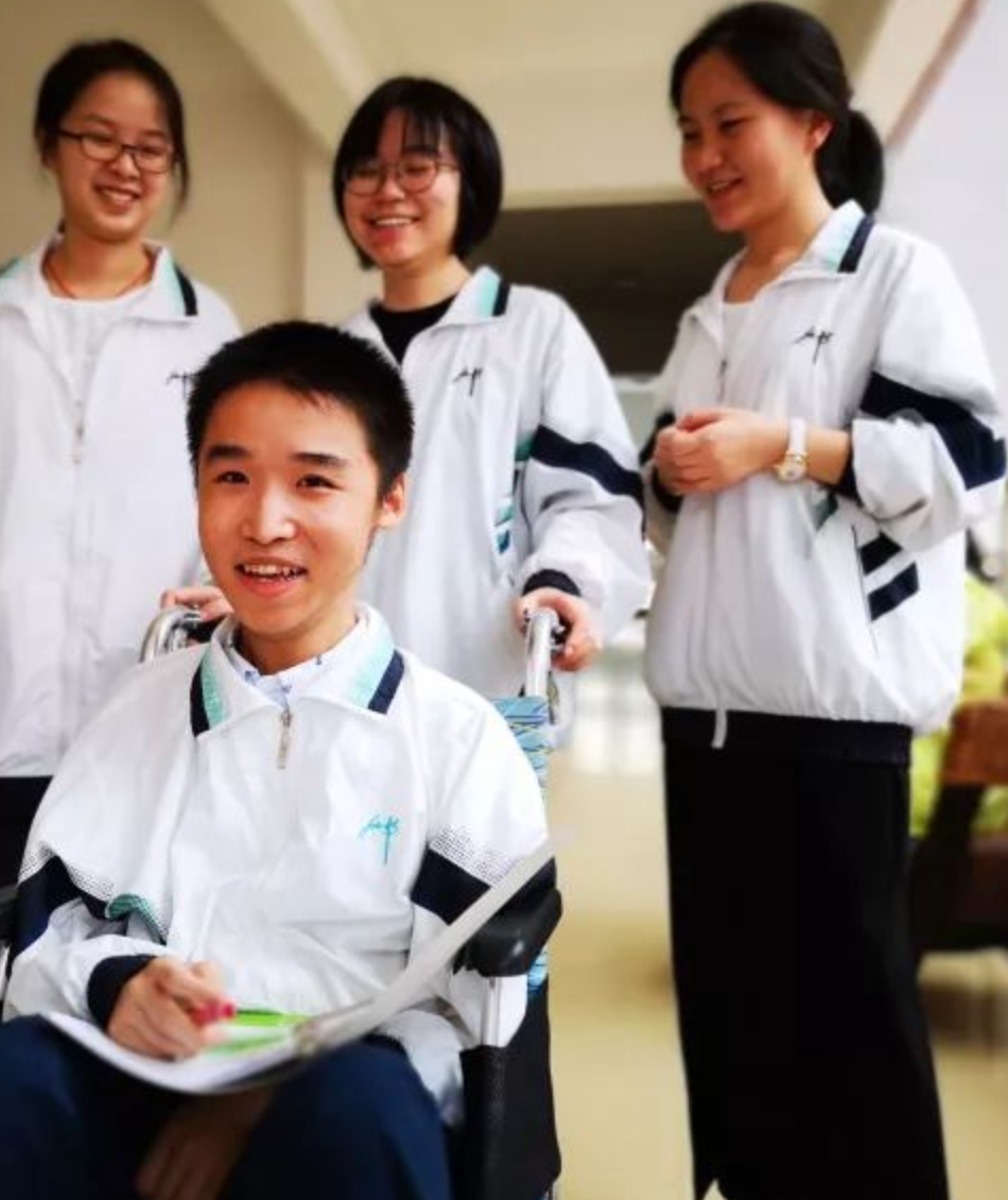 △高中毕业时,张济凡和妈妈(右一)、班主任合影
