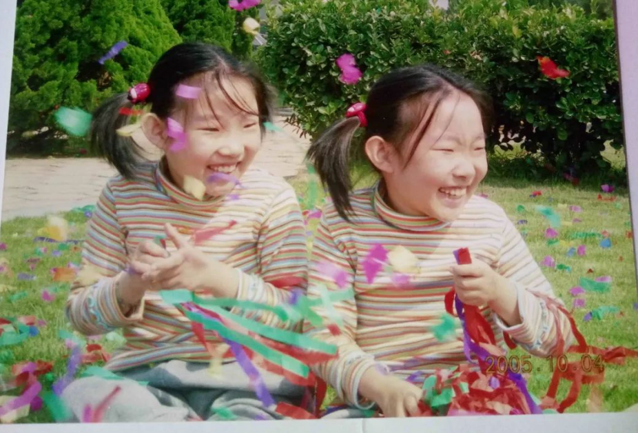 小时候的姐妹俩笑得天真可爱