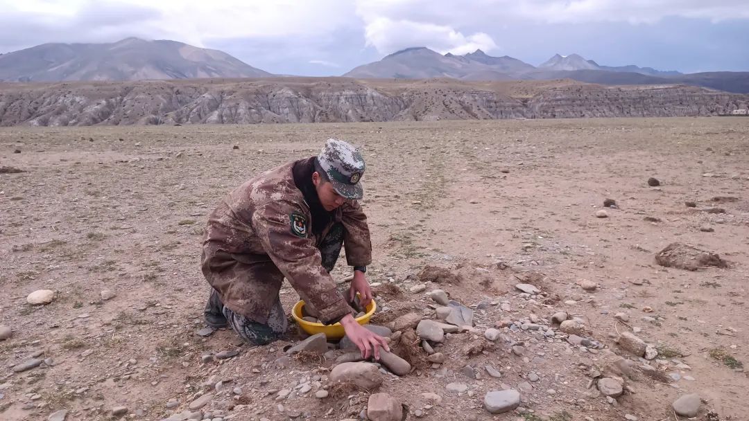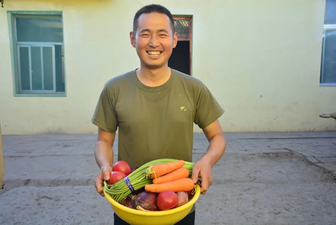 孙建军立马跑进帐篷拿出了一个黄脸盆