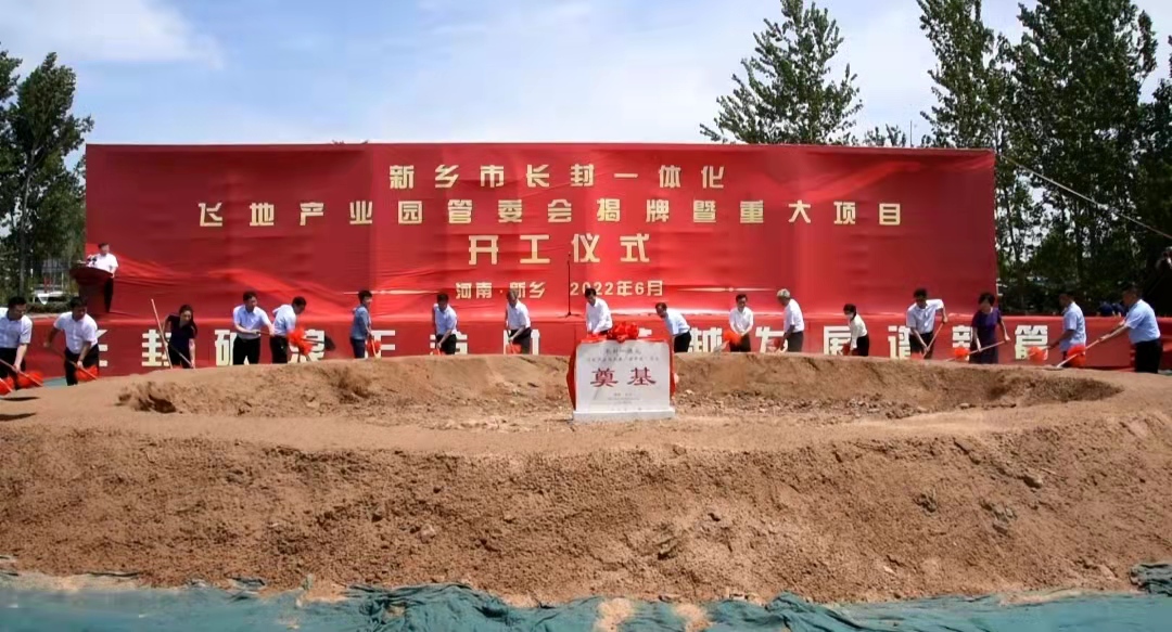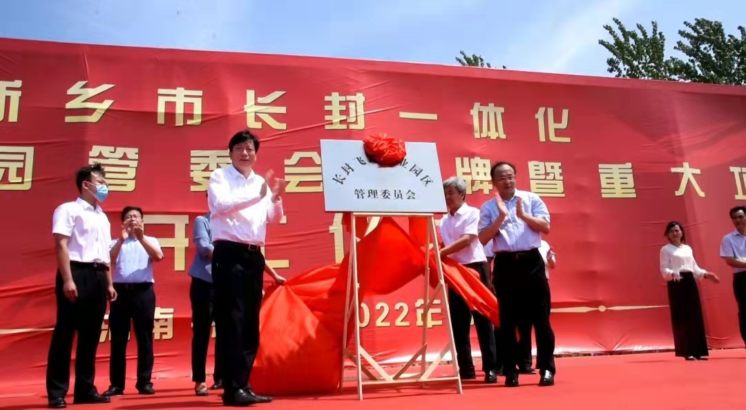 新乡市委书记李卫东、市长魏建平、市政协主席王新军等人,共同为项目培土奠基——当天长封一体化飞地产业园管委会揭牌成立,这是入驻产业园第一个工业项目,也是一个典型的“飞地经济”项目。