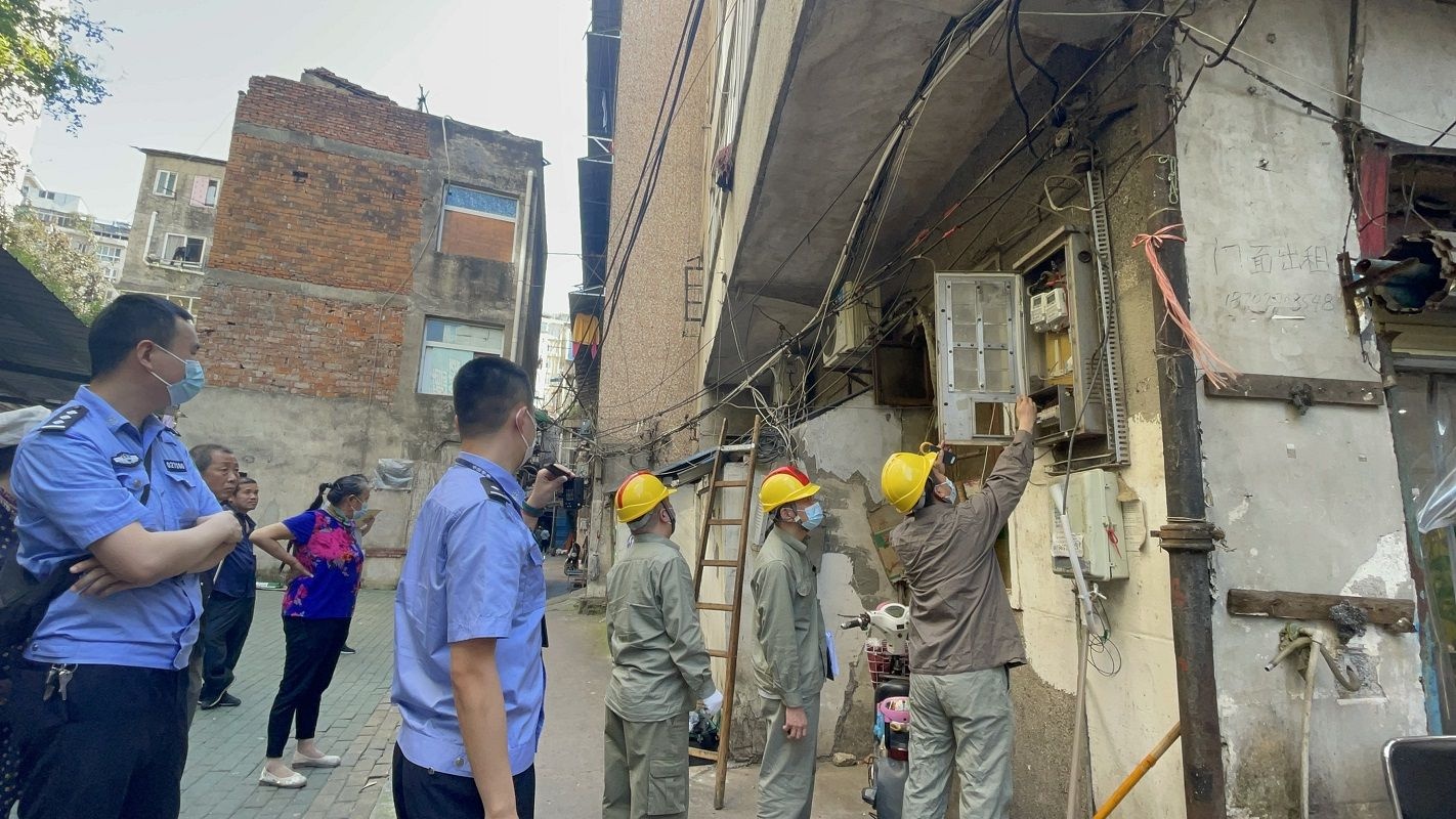 “七一”前夕,汉口客户服务中心党员服务队前往金家墩“十四亩”进行例行巡查。金家墩“十四亩”属“城中村”老旧片区,有私房65栋,住户460余户,因临近汉口火车站,流动人口居多。多年来,该区域私搭乱接现象普遍,线路老化严重,每到夏季用电高峰期,跳闸断电情况时有发生,同时存在火灾隐患。为确保安全,营造良好的供用电秩序,今年以来,汉口客户服务中心加大“政企、警企”联动及营配协同力度,重点针对金家墩“十四亩”片区开展精准改造及规范用电“飓风”行动,让广大居民用上安心电。