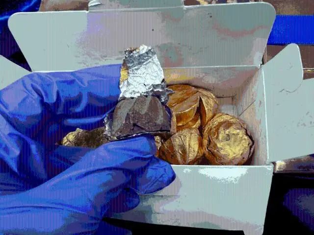 但经海关关员仔细比对后发现,同样包装的巧克力每盒看似规格相同,但实际重量却并不一样,且单颗巧克力用铝箔纸包装的手法较为粗糙,存在伪装痕迹。