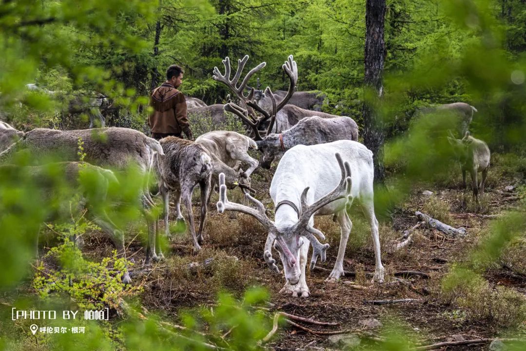 驯鹿是北极物种,大兴安岭是边缘分布地。它们浑身都是适应寒冷的特性:尾巴小小,可以减少散热;皮毛厚重,甚至拥有北极熊那样的中空针毛;悬蹄发达,走路时咔哒作响,在暴风雪中可以给同伴指引……但神奇的是,驯鹿不像许多极地生物那般孤僻,它们本身就是群居的,更神奇的是竟然还选择了人,愿意同人类一起生活。于是,从东到西,好些个极北民族都学会了同驯鹿一起游牧。在那无法养马的苔原上、森林里,驯鹿是游牧民最好的伴当。