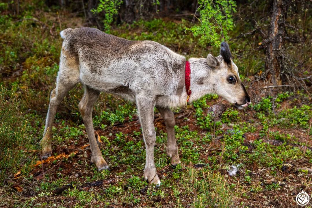 一群驯鹿绕过冰包。领头的鹿王长了一对有7个分叉的巨角,这对角看起来比它的腿还要长,上面还包覆着绒毛,这说明角依旧在生长。所有的鹿身上湿漉漉的,森林里刚下过雨,这是今年夏天的头几场雨,此前天一直旱。雨水让植物很兴奋,草本急冲冲的抽了芽。偏偏那些依赖水潭繁殖的吸血昆虫也很兴奋,成群结队在鹿群上打转。驯鹿不堪其扰,急冲冲的往营地里赶。营地里有主人熏的烟,这是和盐块一样有魅力的东西,吸引着驯鹿赶紧回家。