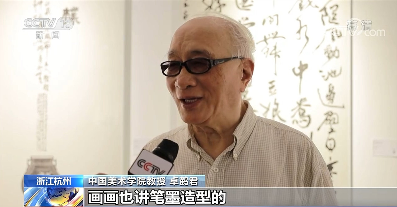 中国美术学院教授 卓鹤君:画画也讲笔墨造型的,能够把这个书法写得更有自己个性,他画的画就更有嚼味,更有着传统的味道,把中国文化的东西更加地发扬下去。