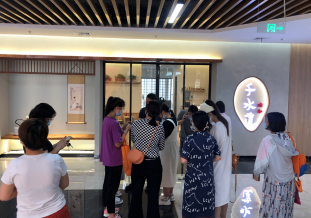 6月27日,华商报记者前往粉巷的千水莲瑜伽店,楼层导视里有千水莲瑜伽馆的名字,但到现场后大门紧闭,店名也变成了另一家瑜伽馆的名字。透过玻璃门,里面千水莲瑜伽馆的宣传展板依稀可见,隔壁店的员工称,这家店早在去年就关门了。