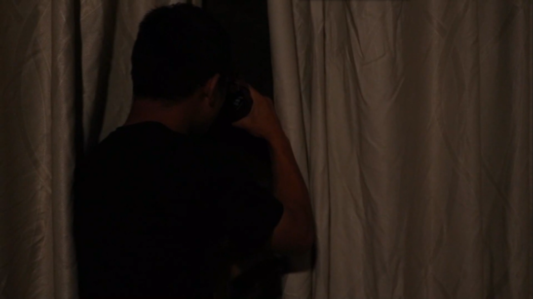 民警正在蹲守,观察犯罪嫌疑人情况。
