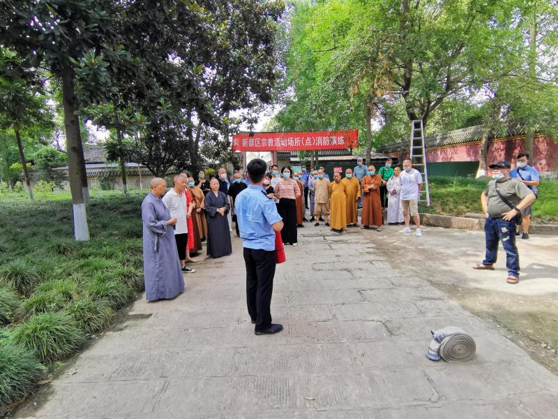 为进一步提高全区宗教界人士消防安全意识,增强宗教场所对火灾的应急处置能力,2022年6月24日,新都区委统战部在宝光寺举办宗教活动场所夏季消防安全培训会。区委统战部副部长、区民宗局局长刘旭华,统战部相关科室、全区宗教团体、宗教活动场所负责人及安全管理员共50余人参会。