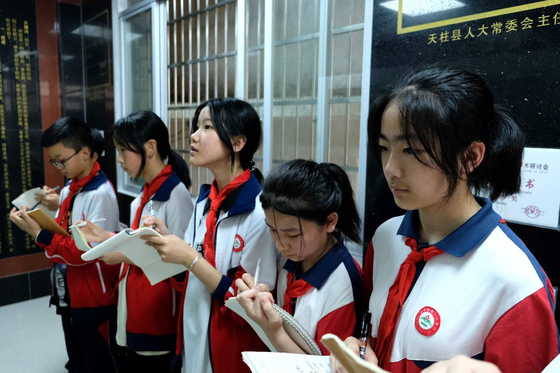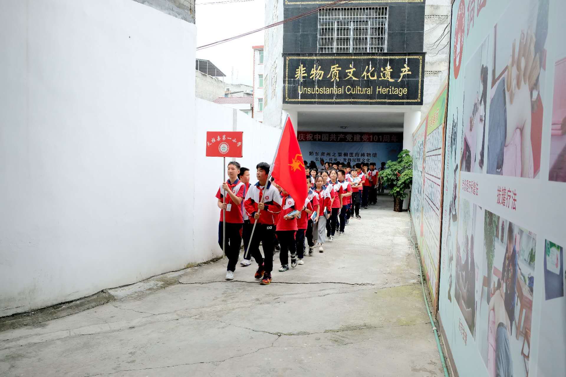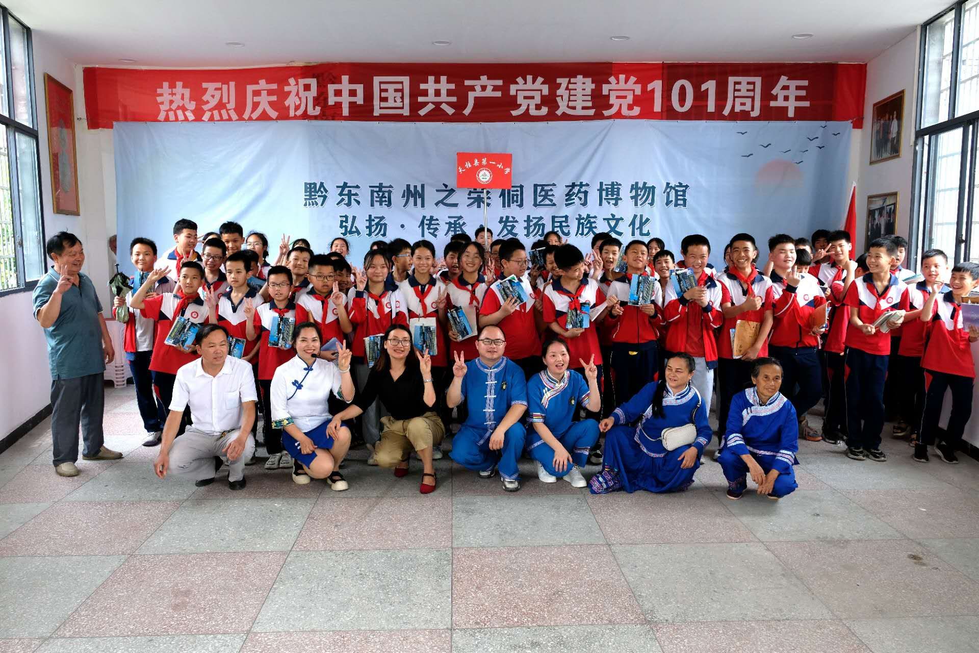 天柱县第一小学的50名学生现场了解传统医药知识,零距离观摩药物标本,聆听讲解员对侗医博物馆的详细介绍,在庆祝中国共产党建党101周年中抢答侗医知识。