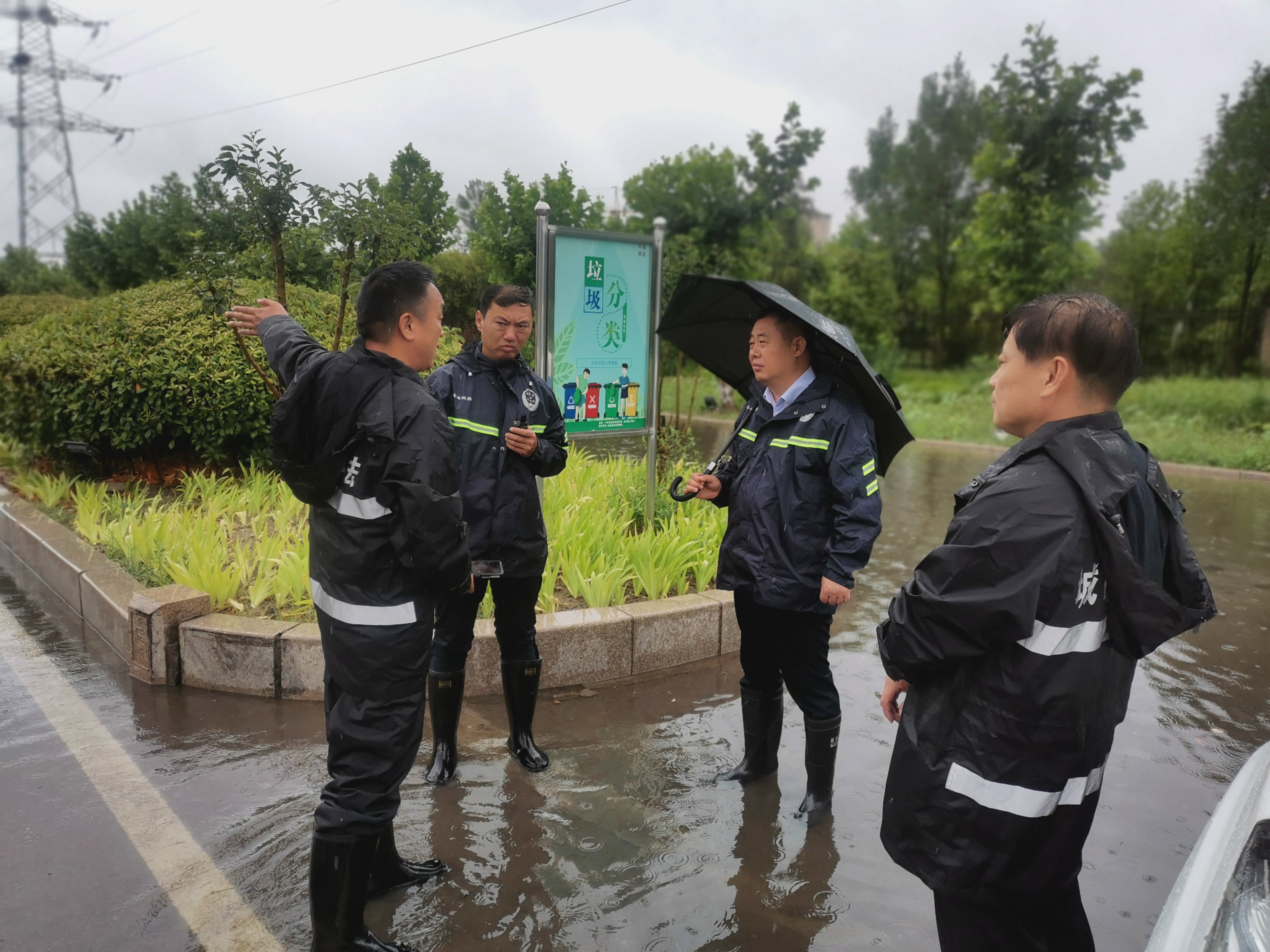 雨情就是命令,防汛就是责任。暴雨来袭,该局迅速启动应急预案,执法人员奔赴各自网格区域奋战防汛一线,出动城管队员近300人在各高架桥路口、涵洞口及积水点安排定点值守,对往来车辆、人员进行劝阻,发现隐患立即安排处置;出动环卫人员600余人加强路段巡查,及时清理雨水井箅子上的树叶、垃圾等;全面精准排查道路积水、窨井盖口树叶杂物堵塞等;督查室人员由督查室主任带队,对全局各大队防汛应急落实情况、人员值班值守、物资储备、隐患排除等进行督查,发现问题立即通过对讲机反馈防汛人员。