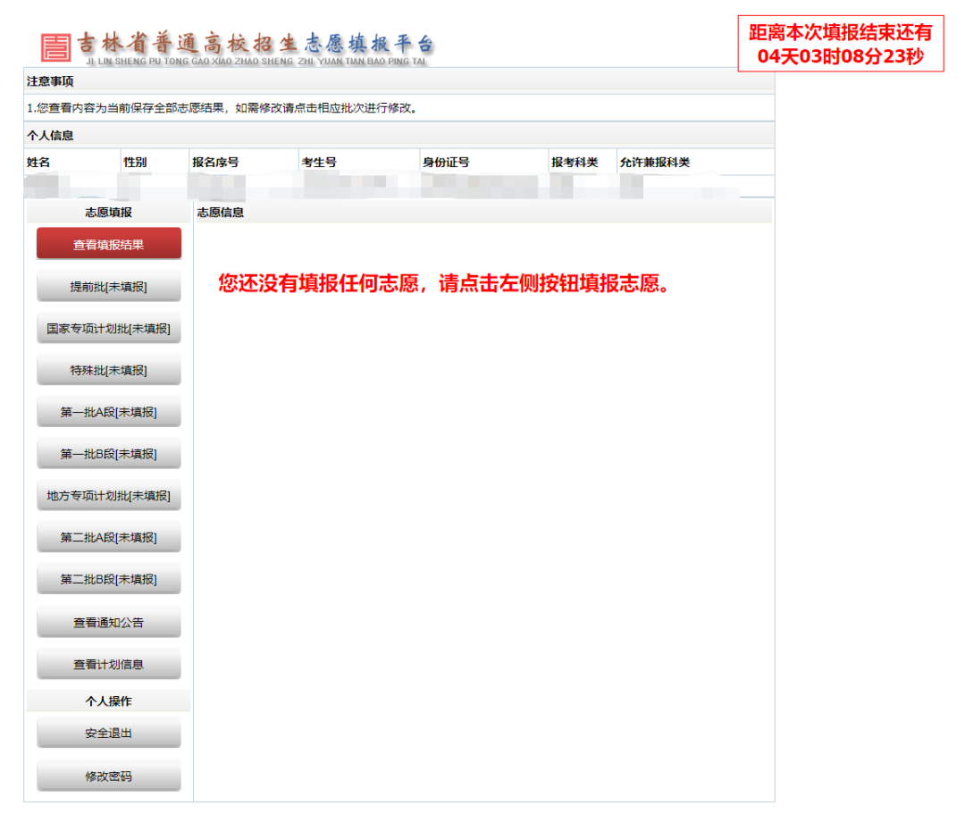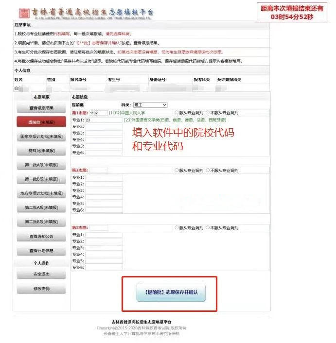 登录网上填报志愿网址(https://gkzy.jleea.com.cn)