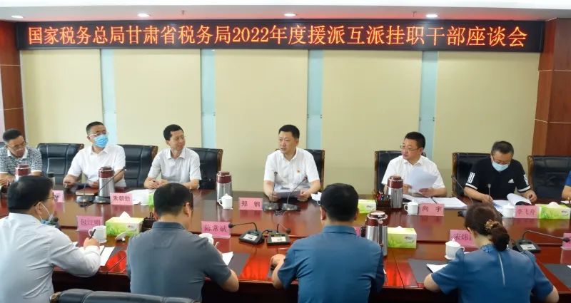 6月21日,国家税务总局甘肃省税务局召开2022年度援派互派挂职干部座谈会。省局党委书记、局长郑钢,党委委员、副局长向宇,党委委员、纪检组长朱朝勃出席会议,省局相关处室负责同志与来自浙江、山东、山西省局8名援派互派干部和省局下派藏区挂职的2名干部进行深入座谈。