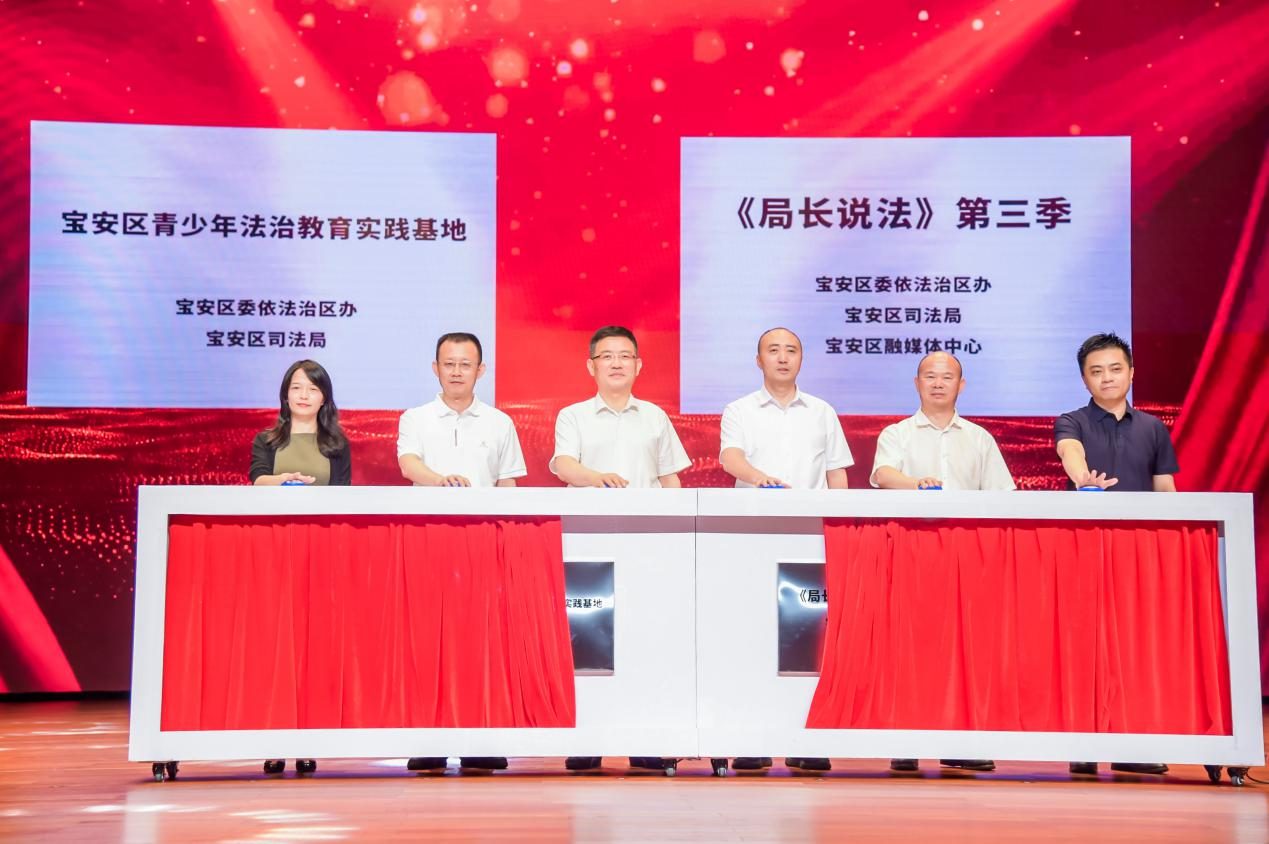 此外,由宝安区委依法治区办、宝安区司法局、宝安区融媒体中心联合制作《局长说法》栏目第三季在现场同步启动,据了解,2020年5月,《局长说法》正式开播,围绕《民法典》《劳动法》《安全生产法》《水污染防治法》《消防法》等,邀请部委办局负责人走进演播室,进行普法宣传。《局长说法》第三季不同于过往以演播室为主的形式,今年法治宣传将走进机关、企业、群众、学校中去。在既有节目的基础上进行打磨、创新,推出更有新意、更有吸引力的节目形态。