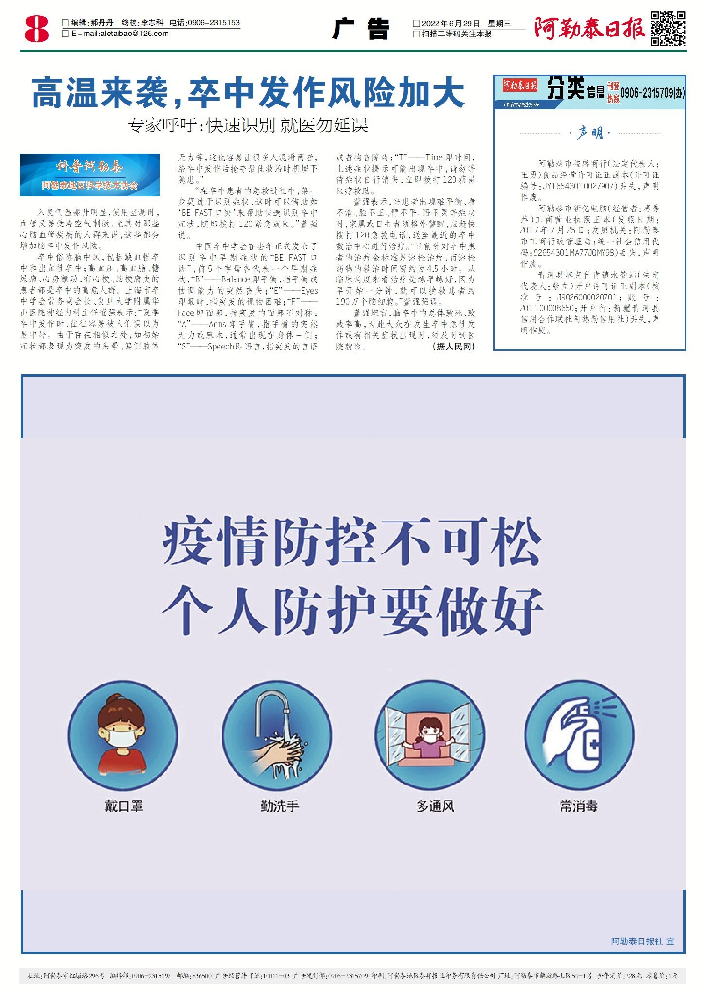 【阅报专栏】 2022年6月29日《阿勒泰日报》
