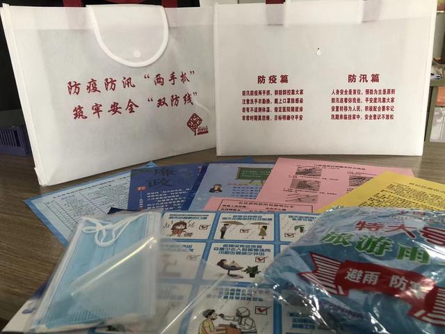 “双防”安全提示包里内容丰富,打开提示包,能看到致社区居民防汛安全一封信、漫话防汛、防汛防疫七字诀、防汛包保明白卡、28处临时避险场所清单、9处便民核酸检测亭位置示意指南、“”双防关系你我他 工作监督靠大家”宣传页、一次性雨衣、口罩、手机隔离防水自封袋等10种宣传品及非常实用的防汛、防疫物资,同时每个宣传页面还配备五个不同的防汛自救视频二维码,扫码就能直接了解防汛自救知识,方便了居民。此次宣传活动还得到了党建联盟单位九台农商银行永吉支行的大力支持,提供3000件雨衣发到居民手中。在发放过程中,各社区网格长和下沉干部将提示包挂到居民、商铺家中的显著位置,避免了以往汛期发放资料居民不好保存的问题,想了解避险知识、社区干部、包保干部联系方式等信息随时可查询知晓,也避免年龄大的居民因不会使用智能手机影响防汛知识学习的问题,最大程度方便了辖区居民。