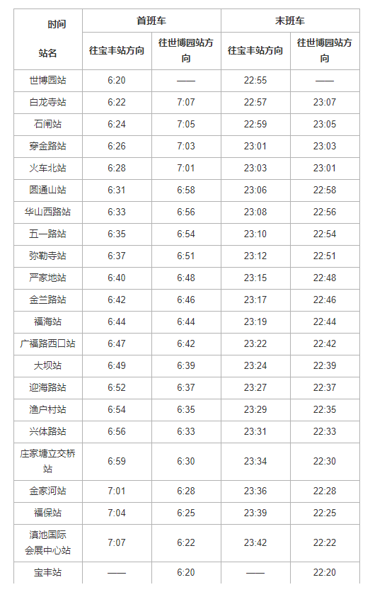 换乘站首末班车时间