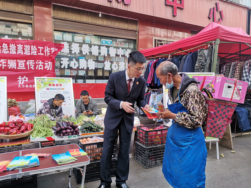 近日,大方县人民检察院组织干警到东关乡开展禁毒知识宣传工作,通过展板展出、发放禁毒资料、现场讲解等方式,向到东关赶集的群众宣讲相关知识,