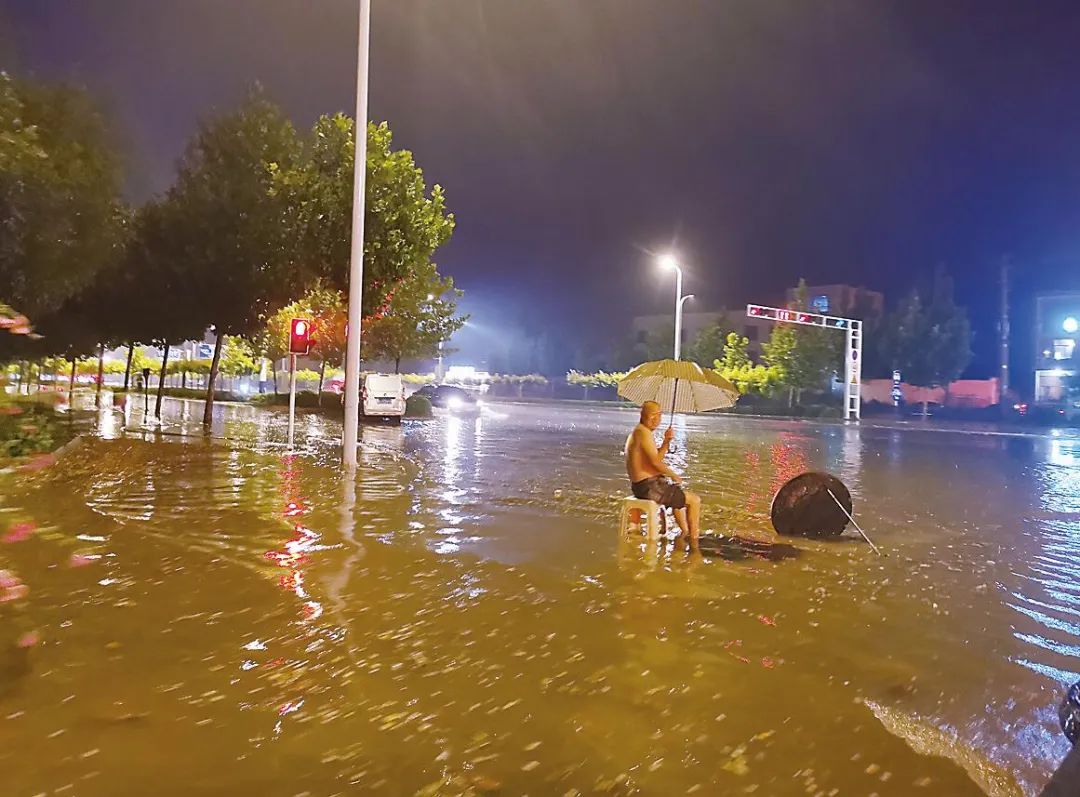 “以前,积水深的时候,经常有车辆在这里熄火。现在天黑了,司机被困在这里很麻烦。”张先岐说。打开排水口后,担心来往车辆和行人掉进去,他一刻也不敢离开。当时还下着小雨,他便撑着伞坐在凳子上守在排水口旁。同时,张先岐还让19岁的孙子张洋拿上伞和凳子守在另一处排水口旁。