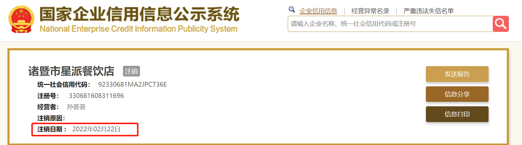 值得一提的是,该侵权餐饮店已于今年2月注销。