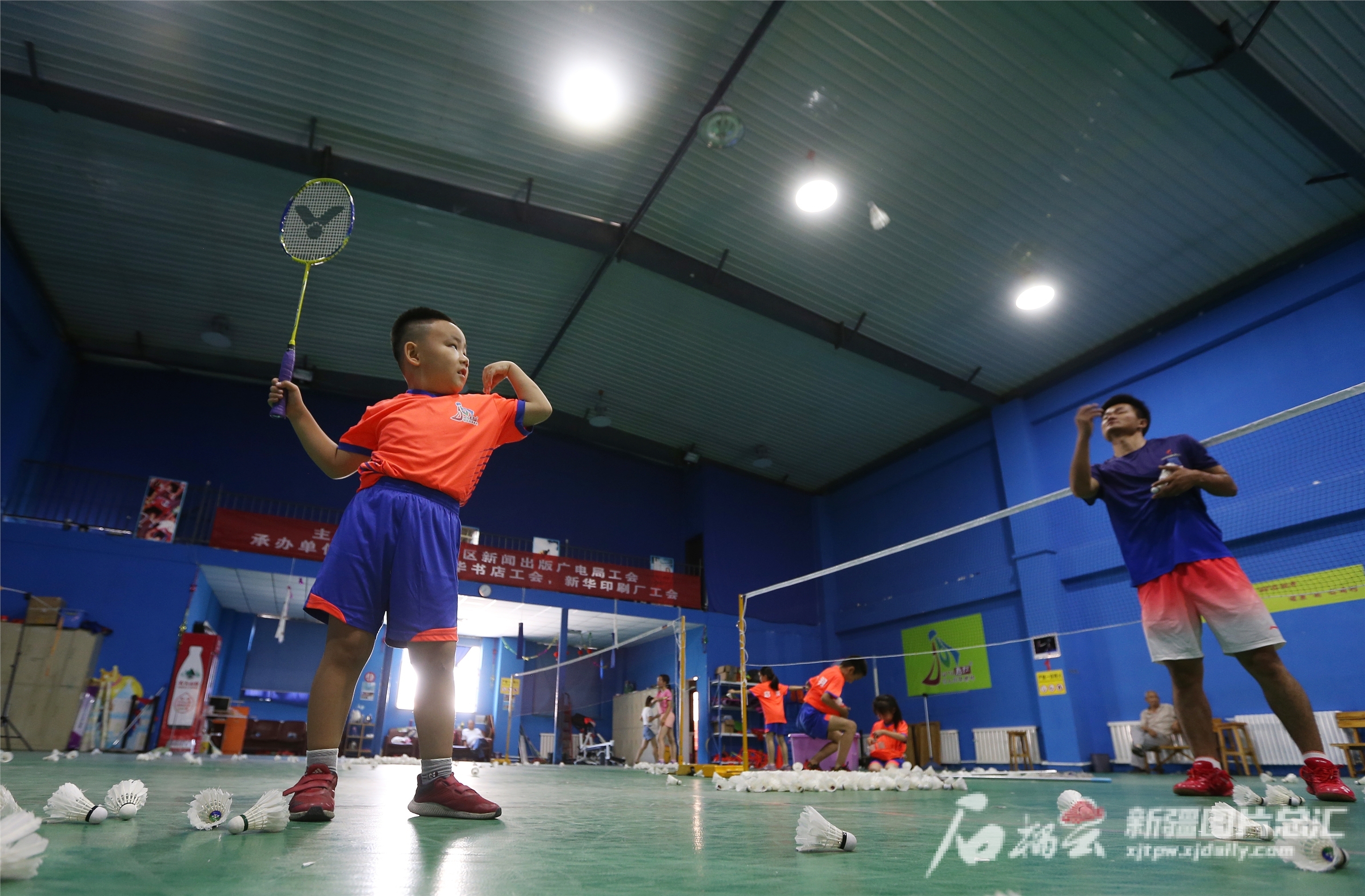 暑假期间,小朋友在乌鲁木齐市天山区新疆新华印刷厂家属院羽毛球馆里打羽毛球(资料图)。石榴云/新疆日报记者 李瑞摄
