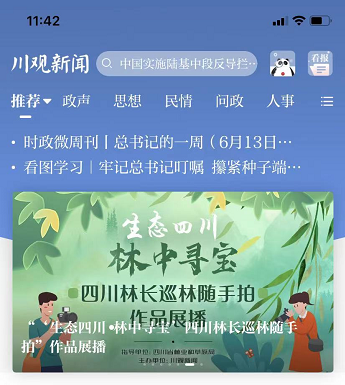 方式一:打开川观新闻客户端,在首页顶部幻灯区位置找到“生态四川•林中寻宝”活动展播专区,即可参与点赞,点击单个作品可在详情页查看作品文字、图片、视频等内容;