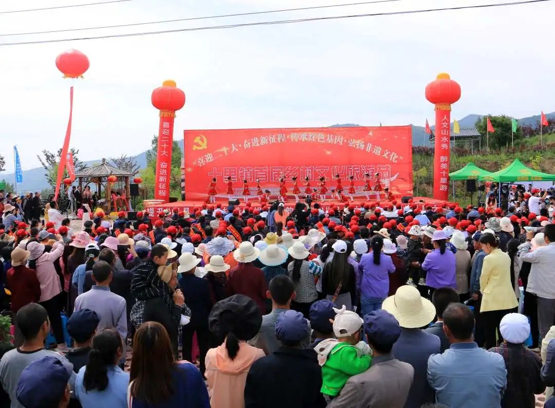 驼峰山下、洮河之畔,伴随着礼炮轰鸣声,以“喜迎二十大、奋进新征程、传承红色基因、弘扬非遗文化”为主题的岷县十里镇首届乡村文化旅游节拉开帷幕。游人结伴而来,或品尝特色美食,或赏花闲聊,或近距离感受“手艺人”的独特技艺,在青山秀水间奔赴了一场文化盛宴。