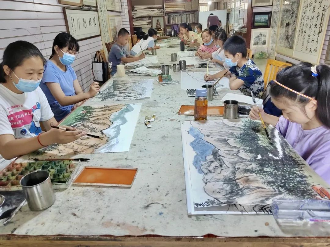 活动分为学书法和画国画两个部分。活动现场,书法老师为大家介绍了书法艺术的演变过程,从笔墨纸砚讲到字体、字型结构、书写要素,在对书法的艺术技巧进行讲解之后,老师现场挥毫泼墨,为大家展示了精湛的书法技艺。在青少年练习实操中,同学们根据老师的讲解加上自己的感悟,有模有样地书写,展现了一场精彩的书写盛宴。