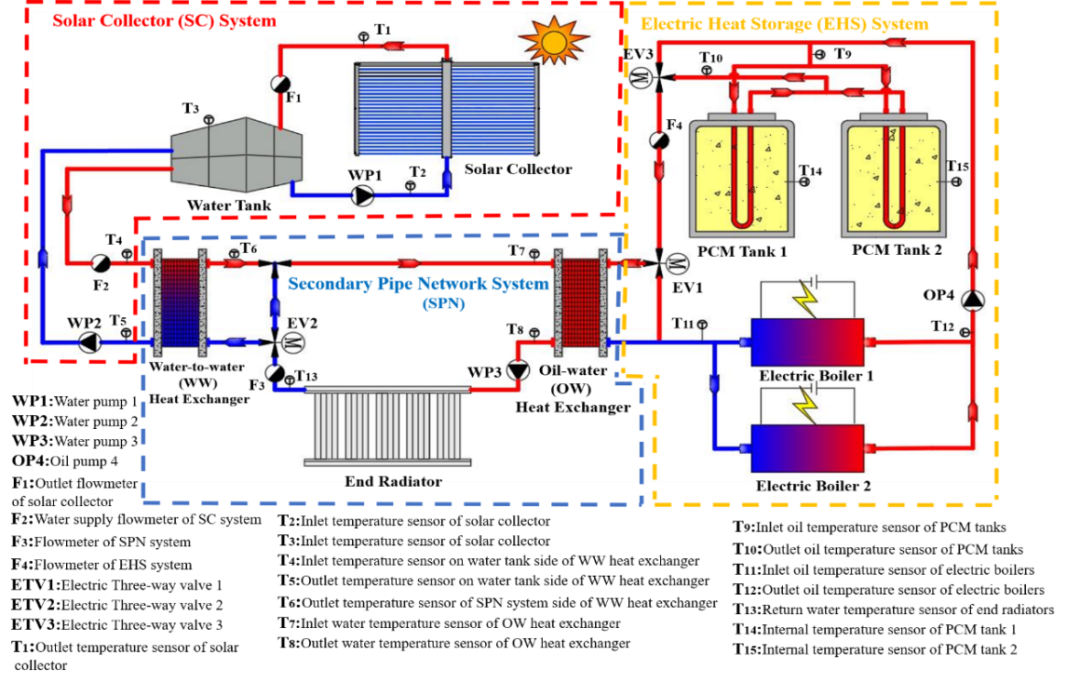 相变蓄热耦合太阳能热预测技术的极低碳供暖技术:(a) 系统原理;(b) 示范项目.