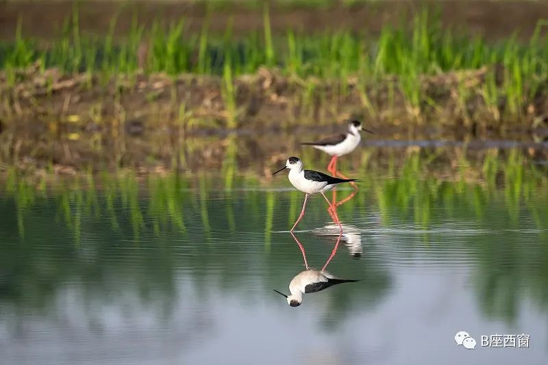 内行的朋友,辨认出这是黑翅长腿鹬,江湖人称“长腿美娘子”。你看它,晚礼服,白衬衣,身姿绰约,飞翔时,它们那双红色的长腿仿佛变成了一对橙红色的长尾巴,飘在身后,令人赏心悦目。我的故乡,多年治理海洋生态环境,滩涂景色迷人,呈现出人与自然和谐共生的向好态势,长腿鹬也被吸引来落脚觅食了。相信美丽的海州湾,滩涂上鱼虾蟹蛤丰富,这些让人望去浑然忘忧的美丽鸟儿,还会常来做客的。