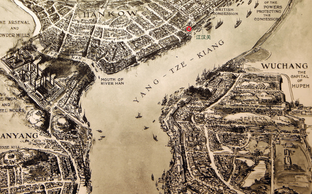 汉口海关最早设于汉口开埠后的1862年,名江汉关,现存江汉关大楼建成于1924年,为一座欧洲文艺复兴式风格的钢筋混凝土建筑,由英国建筑师辛普生设计,上海魏清记营造厂承建。江汉关大楼镇守于原租界区之南端,可北视整个租界区及其所临江面,南望汉水入江口,扼三镇两江航道之咽喉。