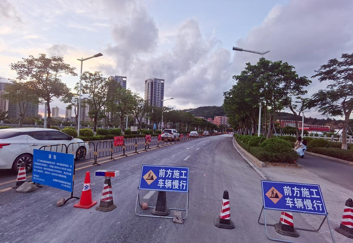 山湖海路(金城路至机场东路段)现状为道路软基沉降造成的道路波浪起伏不平、局部半幅下沉等病害,修复内容主要是对道路结构和水稳层拆除后加固钢筋混凝土并调平重建。该工程已于6月11日开工,预计7月中旬完工。