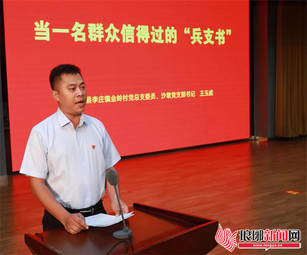 在宣讲团成立仪式现场,郯城县李庄镇金岭村党总支委员、沙墩党支部书记王玉威,莒南县十字路街道东兰墩村党支部书记石学东,沂水县院东头镇西墙峪村党支部书记王成成,沂南县界湖街道东村社区党支部书记张京辉和临沭县郑山街道新村党支部书记王恒成等5位“兵支书”依次登台宣讲,分享了他们扎根基层、矢志不移,带领群众建设美丽乡村的奋斗故事。