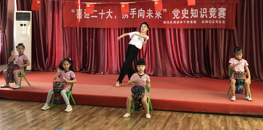 随后,幼儿园的孩子们为老干部带来了精彩的表演,有跳舞、朗诵、非洲鼓等节目,幼儿园老师还表演了舞蹈《万疆》,共同祝愿祖国繁荣富强,一张张可爱的笑脸让整个活动现场变得阳光温馨。