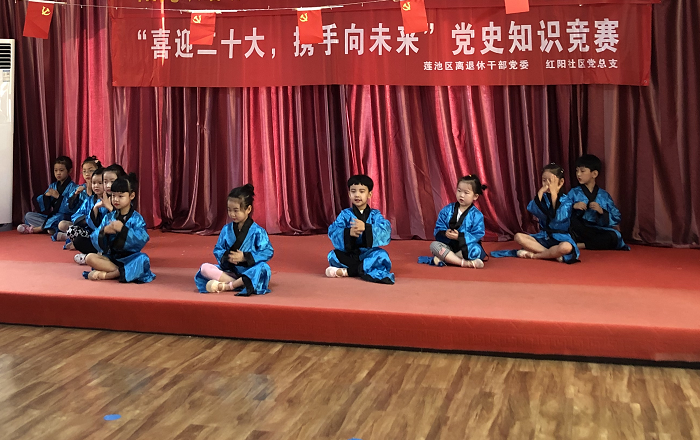 为弘扬爱国主义精神,激励小学生们向老干部党员学习,近日,保定市莲池区红阳社区联合区老干部局、市阳光双语幼儿园举办了“喜迎二十大、携手向未来”活动。