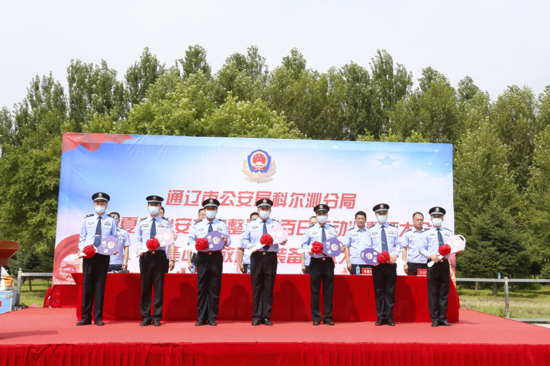 2022年6月29日,通辽市公安局科尔沁分局举行夏季治安打击整治“百日行动”誓师大会暨警用装备集中发放仪式,以集体宣誓的形式向社会发出打击整治违法犯罪最强音,以集中发放警用装备活动向社会展现公安维护稳定硬实力。