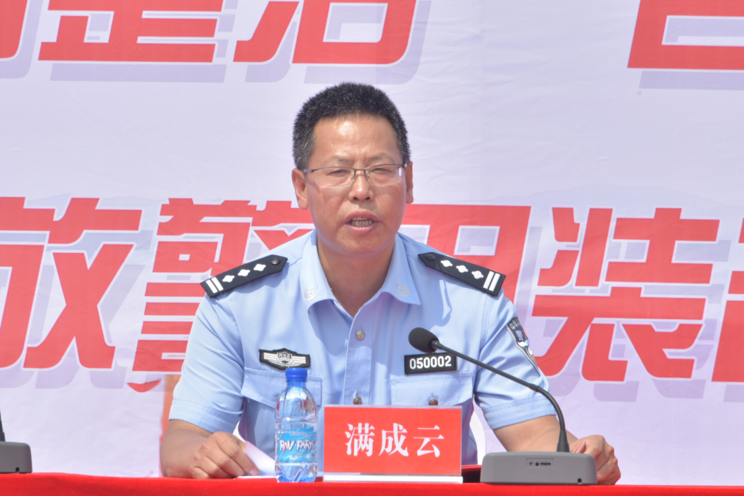 一线单位代表领受装备,表示将准确把握、积极应对夏季治安形势,把各项打击整治措施抓到底、落到位,确保社会大局持续稳定。