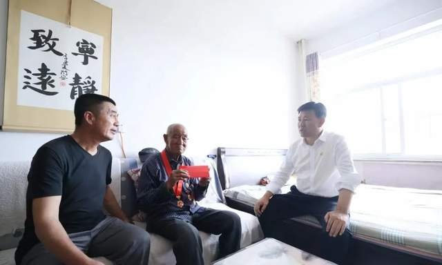 廉海平深情看望了94岁的老党员李金才,聆听了老人跟随彭德怀、王震解放大西北战役,共话革命精神的传承。为其颁发“光荣在党50年”纪念章和慰问金,并详细询问他的家庭情况和生活状况。表示,这枚“光荣在党50年”纪念章既是对老党员初心和信仰的见证,也是老党员一生跟党走的见证,它生动诠释了为党奋斗、对党忠诚的崇高品质,希望全区党员干部学习老党员的奉献拼搏精神,积极投身离石区经济社会发展。