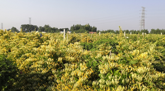 “金银花耐盐碱、耐旱、耐涝、非常适合本地种植,而且栽培方法简单,适应性强,是一种具保健、观赏及生态功能于一体的经济植物” ,西葛村党支部书记汪经轴告诉记者,“玫瑰、金银花两种花花期是错开的,因此鲜花产业增产又增量。就今年来说,两种花合计产量可达6000斤以上,现在,金银花已经进入了盛花期,采摘晾干后,省内的医药厂家就直接上门收,平均一斤能卖到10块钱,经济效益相当可观”。